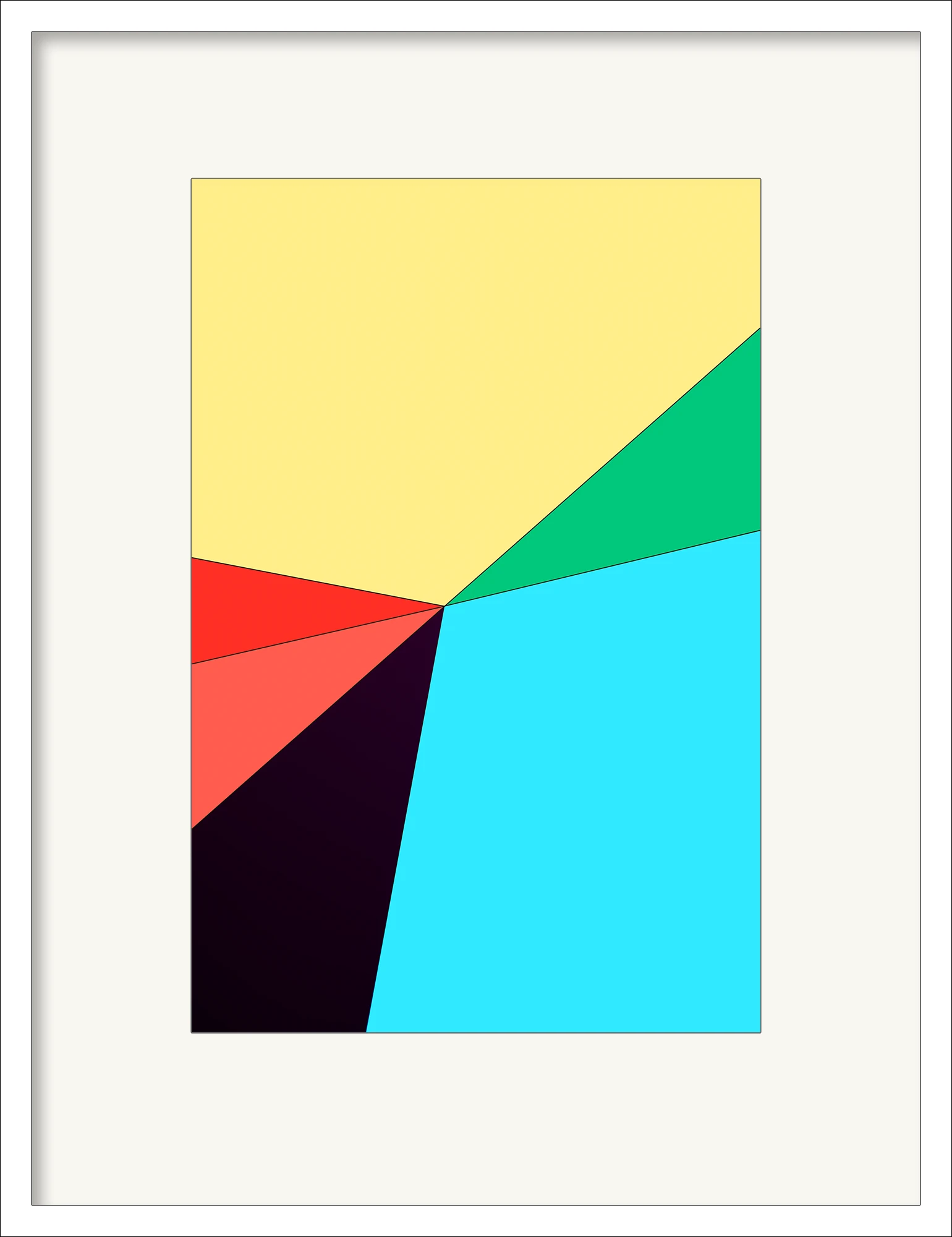 Colors – Name Them is a study in clarity and ambiguity. Inspired by the language of the Bauhaus, the series shows superimposed areas of color, precisely cut, yet difficult to name. Red? Blue? Yellow? Green? The tones remain undecided, slipping away at the moment of definition. Each composition balances between order and openness, between structure and interpretation. The result: reduced images with maximum effect – clear in form, complex in perception.